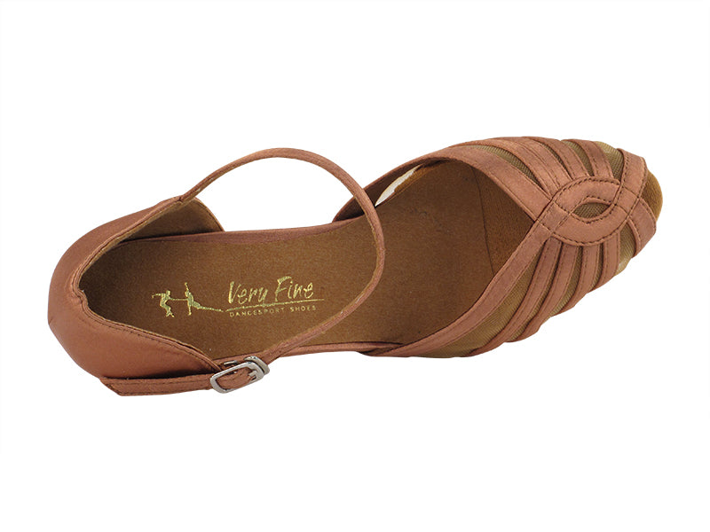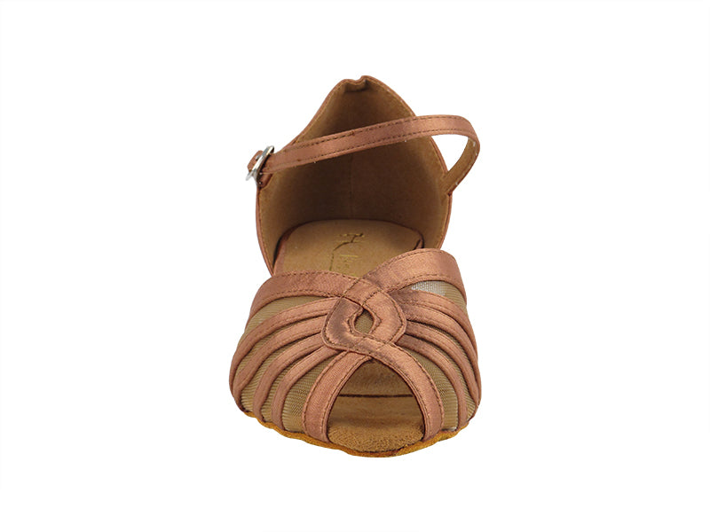 Ladies Flat Heel 2719FT Tan Satin/ Flesh Mesh