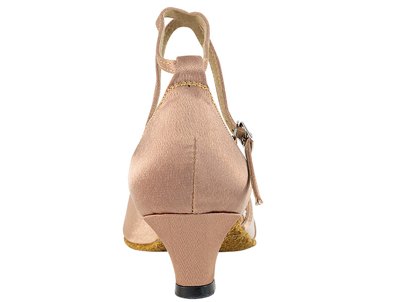 Ladies Cuban Heel 6018 Brown Satin/Flesh Mesh